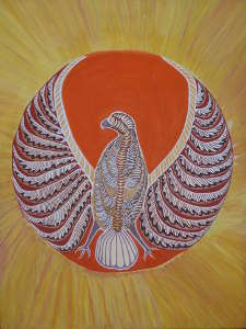 The paintings are to tell our story about our country and the animals that represent our dreaming and places. They also tell the story of our people's struggles since the arrival of Europeans in the Daly area.