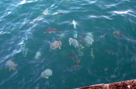 At the Darwin Wharf large moonfish, mullet and others are never far from the surface and are often thrown food by people enjoying the many restaurants which operate here.