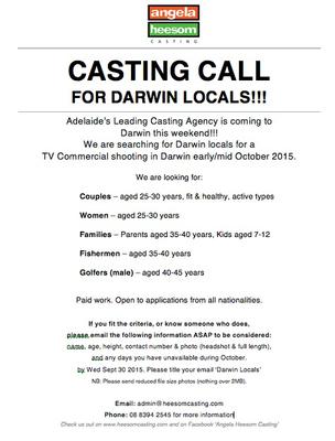 CASTING CALL FOR DARWIN LOCALS!!!