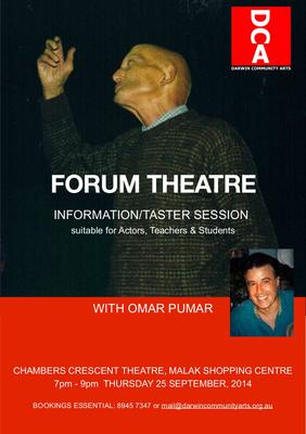 Darwin Community Arts and its CemeNTworx Community Theatre are very excited to be hosting Forum Theatre Workshops facilitated by Omar Pumar Romay. Omar has directed and facilitated over 100 community theatre and community cultural development projects and was the founder of Brisbane Multicultural Theatre.