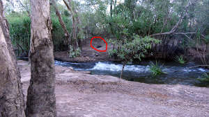 Before you are tempted to cool off with a quick dip in the billabong, check this shot of the weir.