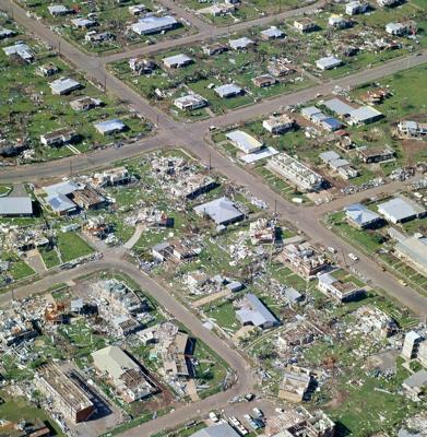 He has told me that it was terrifing. they had a dog that was on top of the 3 matresses that were protecting them when their roof came off.The dog was barking and barking until she was blown away!!! when it was over the roast turkey they put out for tea was still there!!!