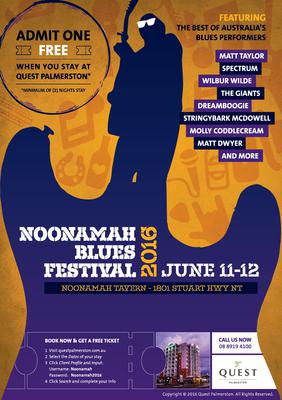 The Noonamah Blues Festival is a 2 Day Festival held over the Queens Birthday Weekend at the Noonamah Tavern approx 30kms South of Darwin on the Stuart Highway.