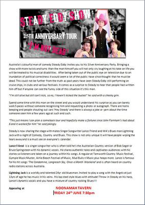 The Steady Eddy Show with his " I'm Not Dead Tour" this is a Comedy, Country & Blues Show with Lance Friend and Lightening Jack.