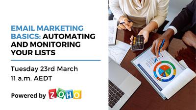 On Tuesday 23rd March at 11AM AEDT, Zoho is hosting a free, educational webinar on automating and monitoring your email marketing lists. Learn how to create automated email marketing campaigns to streamline your customer acquisition process. You’ll also learn about managing your sender reputation score, and how to use key email marketing metrics to assess the effectiveness of your campaigns.