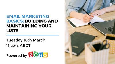 On Tuesday 16th March at 11AM AEDT, Zoho is hosting a free, educational webinar on building and maintaining your email marketing lists. Learn how to build, segment, and nurture your email lists in order to improve engagement and retain quality campaign subscribers. In this webinar you will also gain a better understanding of GDPR, avoiding spam filters, and the importance of keeping your lists clean.